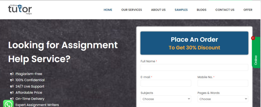 A single destination for all of your academic needs is Online Tutor Helps. Despite the fact that there are several distinct assignment help companies, they provide great satisfaction in claiming to be the best in the market. They have years of experience and a team of devoted specialists, and they are always looking for new methods to help the student community with their assignment-related issues. Students seeking for any wide-ranging support and counselling with your assignment, can get in touch with them. They are one of the leading websites for online assignment help and offer assignment help services. They stand out from competitors in the industry because of their team’s attention to each and everything in your assignment and systematic approach for helping you with your academic project. Online Tutor Helps Review